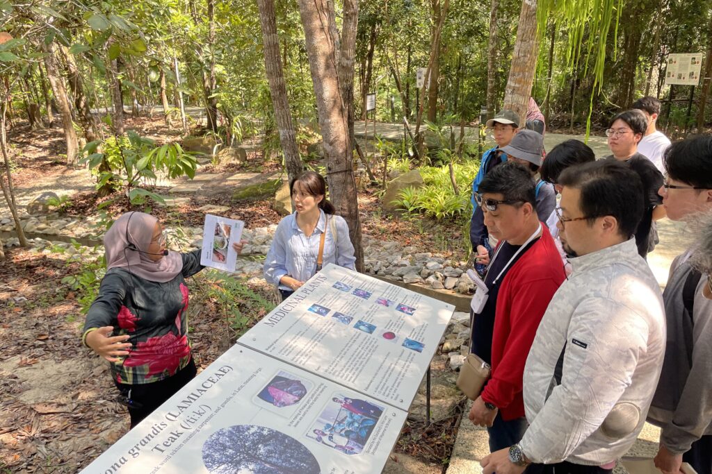 ブルネイ大学の敷地内にある広大な森の中で熱帯植物を見学しました。500種類以上が生育する中、日本では目にすることができない珍しい植物に、受講者は興味津々の様子でした。また、ハチミツやスターフルーツを味わうなど、体験を通して生物多様性やその保全に向けた取り組みについて理解を深めました。