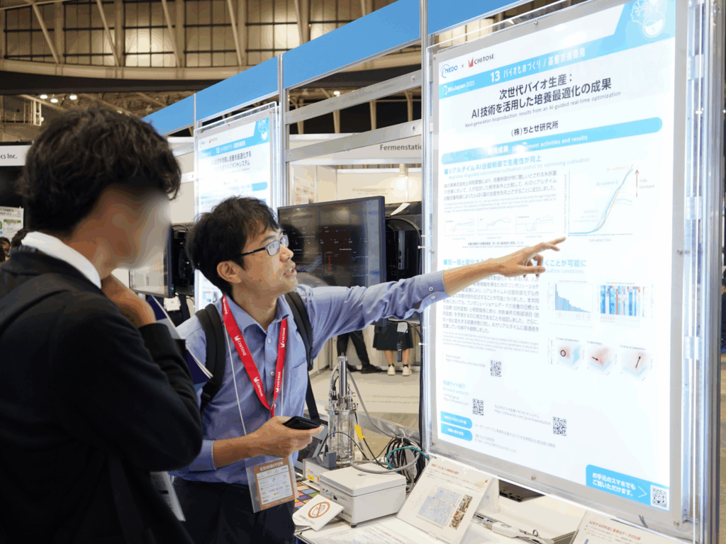 NEDOブース「AI技術を活用し培養を最適化するバイオ生産マネジメントシステム」「次世代バイオ生産:AI技術を活用した培養最適化の成果」