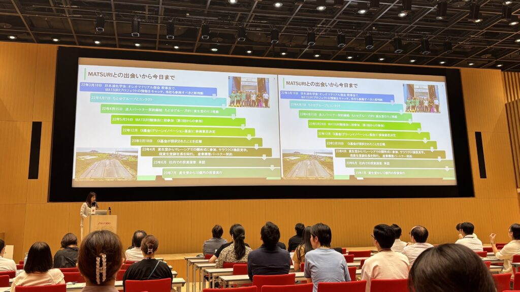 今回の講演は、資生堂社内のサステナビリティへの意識を高めるとともに、MATSURIが企業にとって未来の事業を考える実践の場であることを改めて示す機会となりました。環境と経済を両立させる新しい市場は、既に資生堂をはじめとするMATSURIパートナーと共に動き出しています。