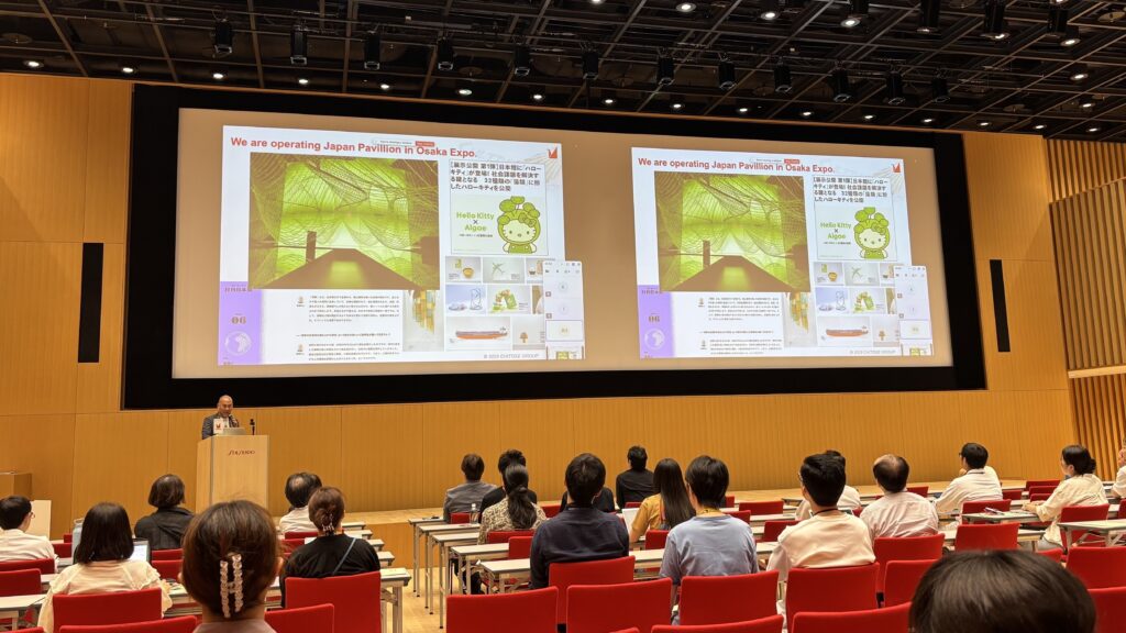 9月2日(火)、MATSURIプラチナパートナーである株式会社資生堂(以下、資生堂)の研究開発拠点「資生堂グローバルイノベーションセンター」にて、ちとせグループ代表 藤田朋宏が講演を行いました。本講演会は「藻類基点で切り開く次世代化粧品の価値づくり」をテーマに、資生堂がサステナビリティへの取り組みをさらに加速し、藻類の可能性を社内に深く浸透させることを目的に開催されました。当日は約70名の研究者・社員に加え、資生堂のエグゼクティブオフィサーの方々も参加され、研究現場と経営層の双方から関心が寄せられる場となりました。